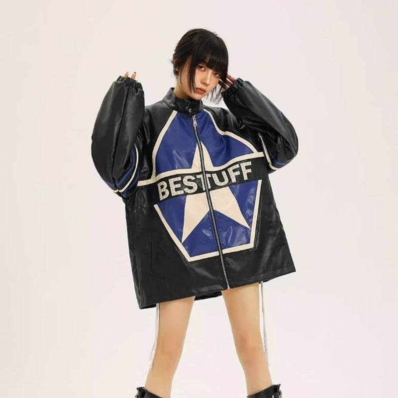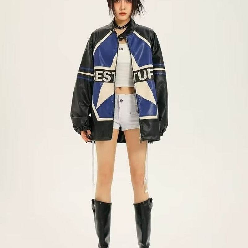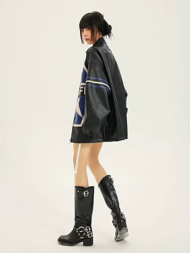 American Retro Biker's Jacket Trendy Leather Jacket Coat For Women