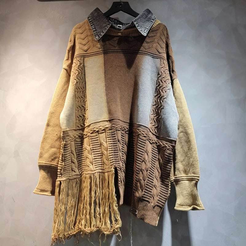Women's Tassel Splicing Knitted Sweater Loose Top | MuddyStock Originals