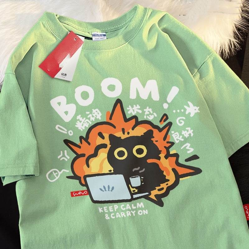 Black Cat Cotton Short-sleeved T-shirt Casual Loose Summer Breathable For Both Men And Women