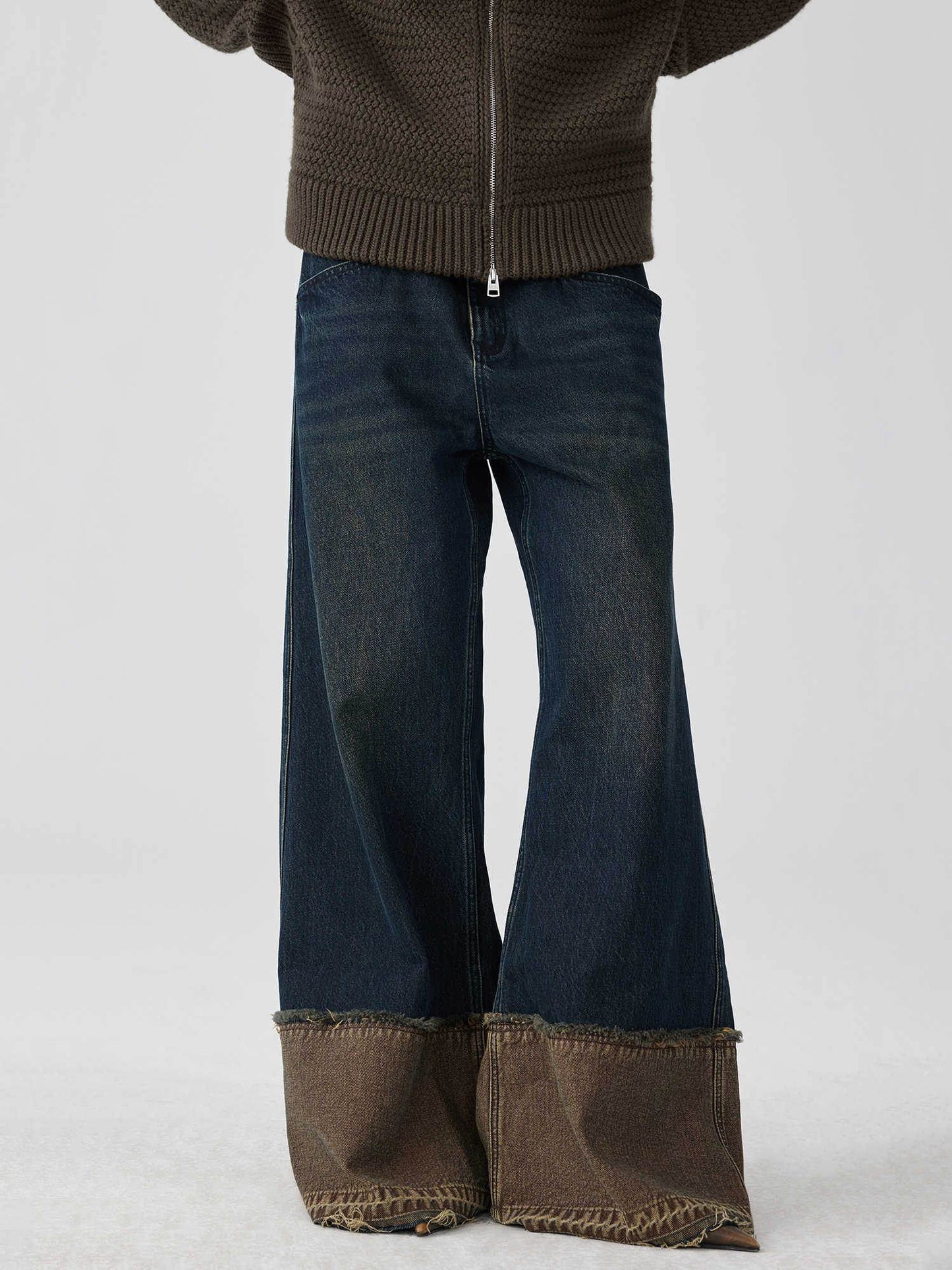 Brown Blue Nano Washing Mouth Reverse Stitching Raw Hem Jeans For Men And Women
