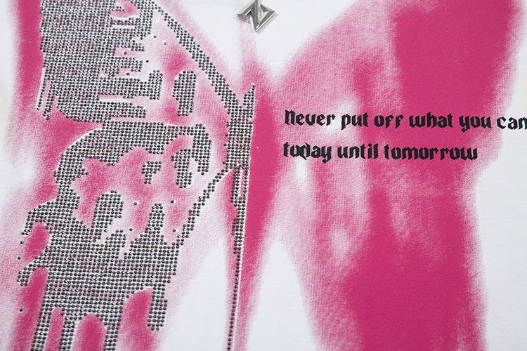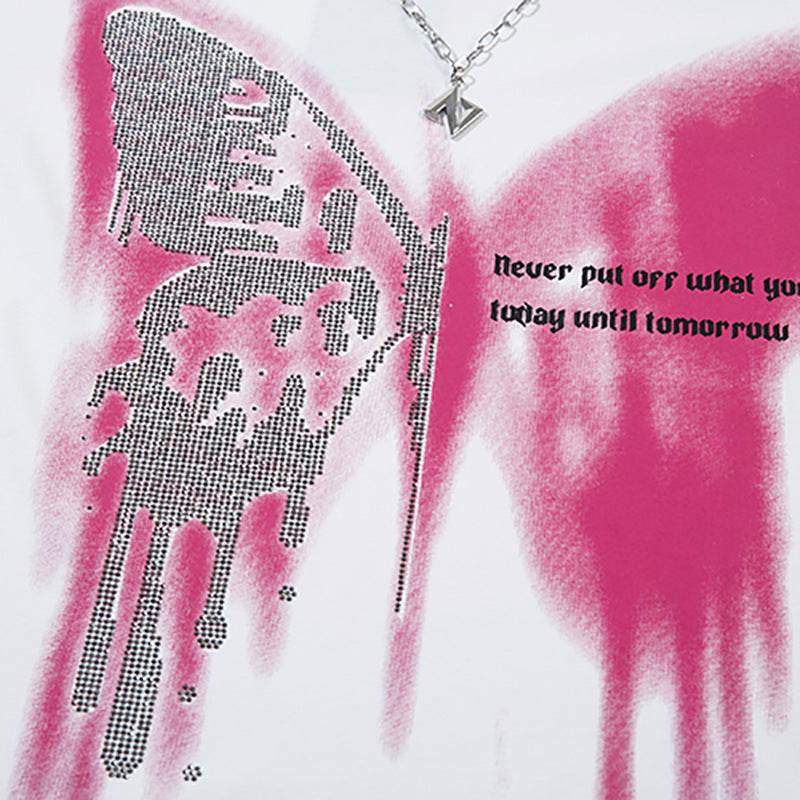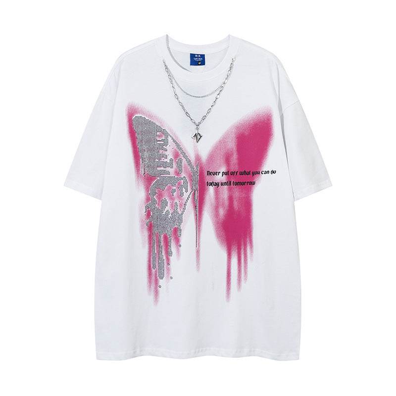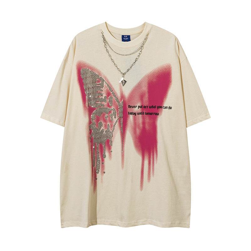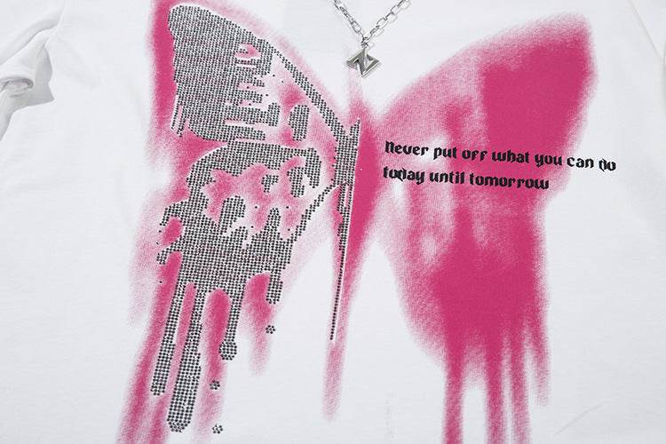 Butterfly Rhinestone Printed Necklace T-shirt For Men And Women