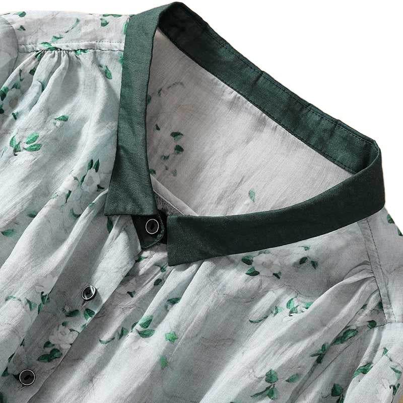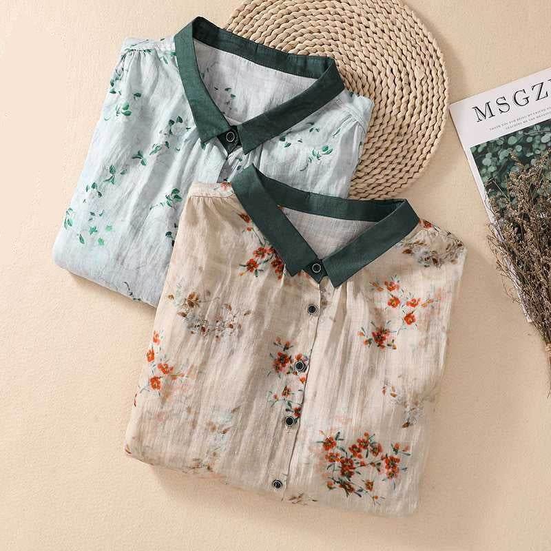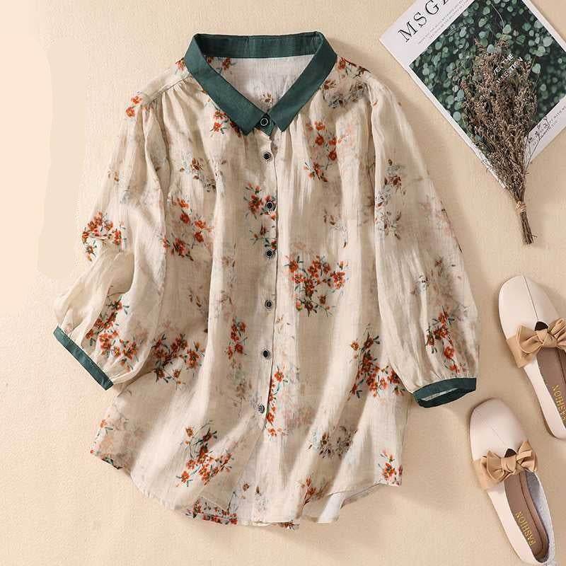 Cotton And Linen Top Women's Loose Printed Linen Shirt