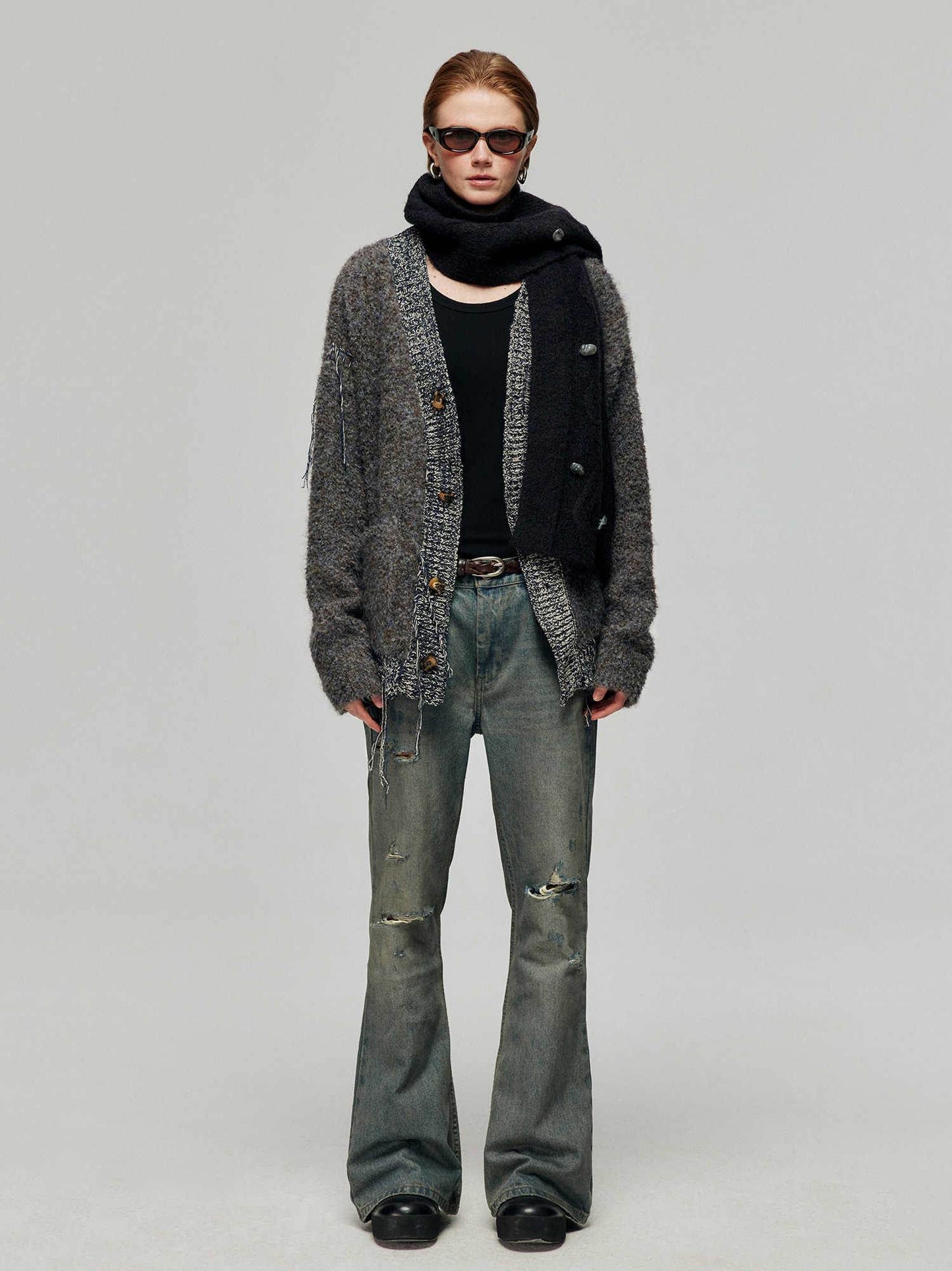Experience timeless style with these Cotton Retro Make Old Ripped Loose Micro-flared Trousers Jeans. Crafted from soft cotton, they offer a comfortable fit with a vintage-inspired ripped design and subtle micro-flared legs for a unique silhouette. Perfect for those who appreciate classic fashion with a modern twist. Handpicked by MuddyStock for quality and style.