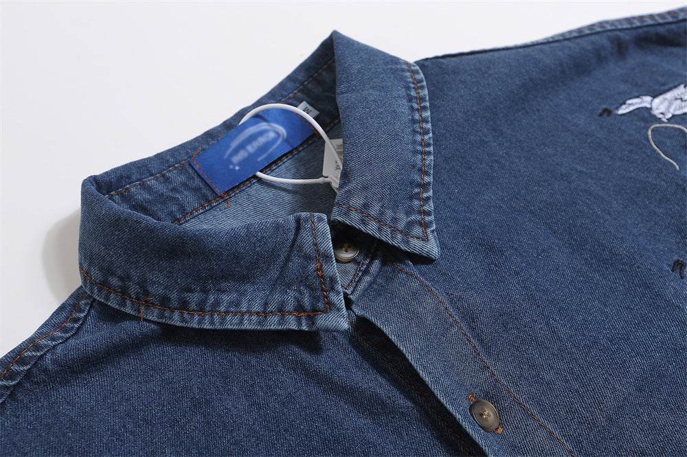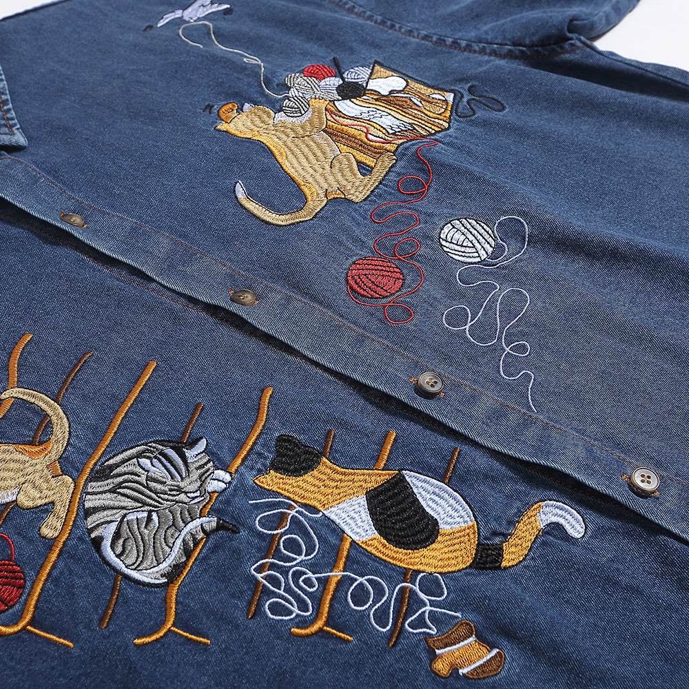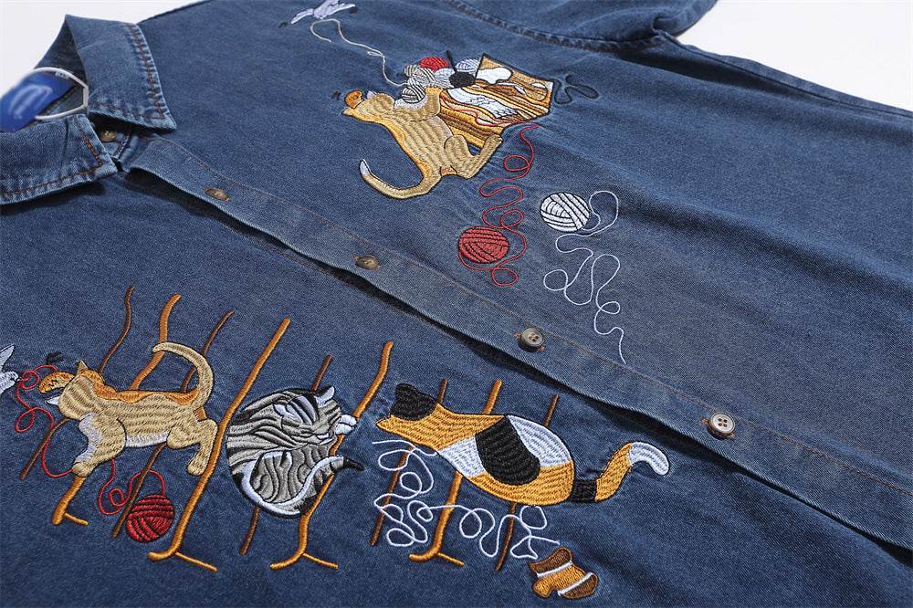 This Embroidered Cat Denim Short Sleeve Shirt for Men and Women blends classic denim with playful embroidery, offering a stylish yet casual look. Its short sleeves and comfortable fit make it ideal for everyday wear, while the detailed cat embroidery adds a unique, artistic touch. Curated by MuddyStock to ensure quality craftsmanship and standout style.