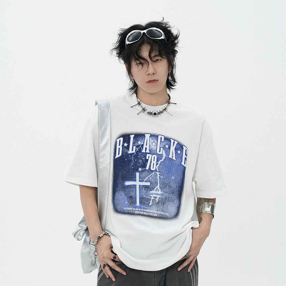 Fashion Cross Printed T-shirt Short Sleeve Men