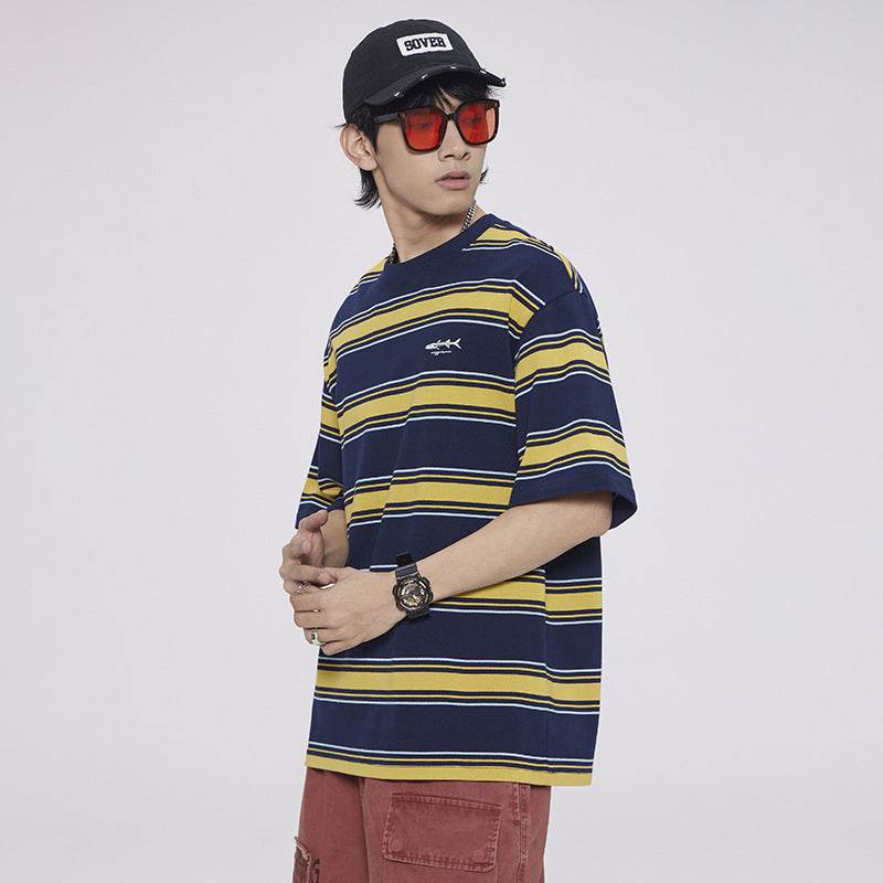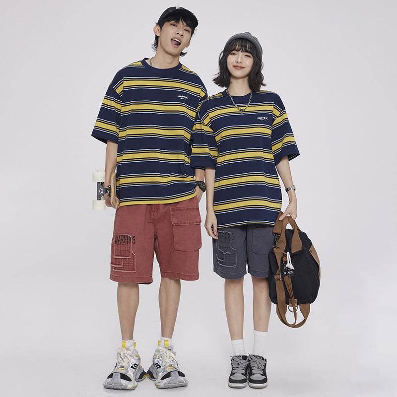 Fashion Personality Striped Short-sleeved T-shirt For Men And Women