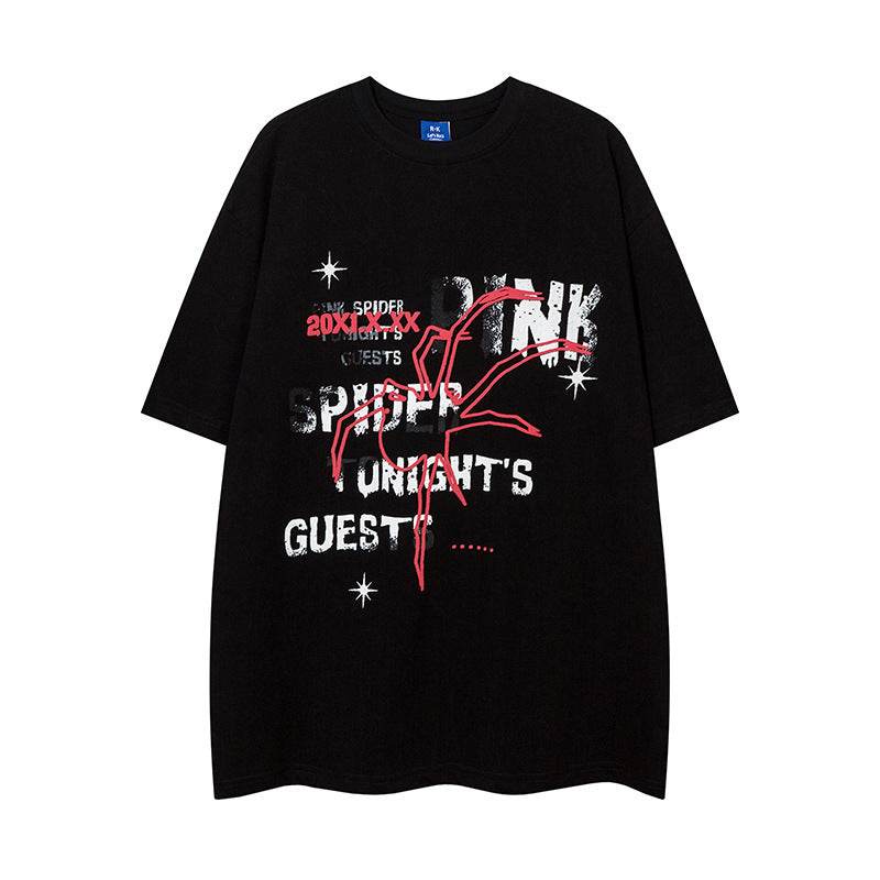 This spider letter print short-sleeve shirt is designed for both men and women, blending comfort with distinctive style. Crafted from soft, breathable fabric, it offers a relaxed fit ideal for everyday wear. The unique spider letter print adds an edgy, contemporary flair to your casual wardrobe. Handpicked by MuddyStock, this shirt ensures quality and a standout look for versatile fashion.