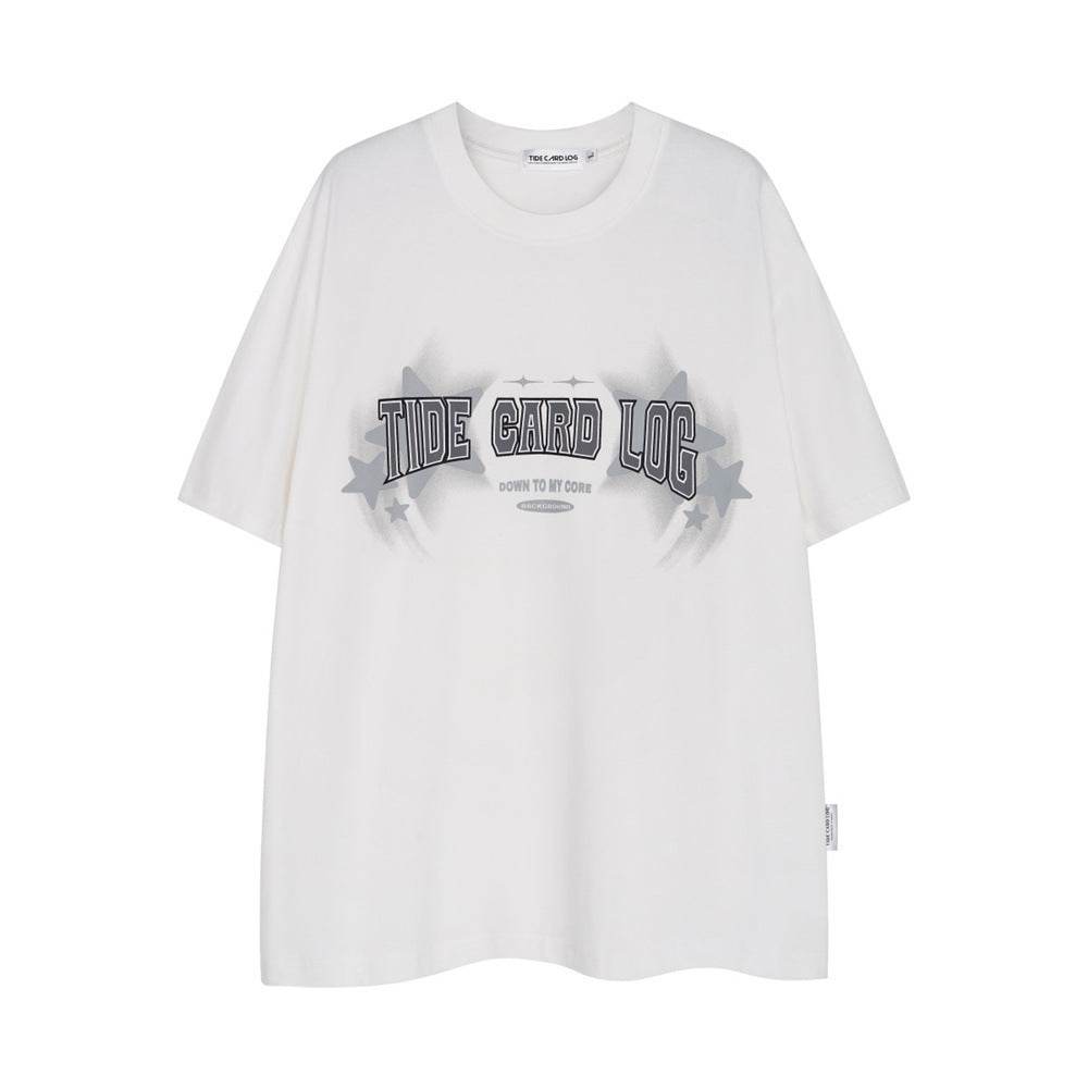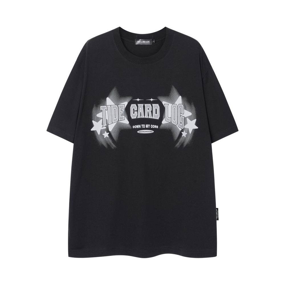 Five-pointed Star Fuzzy Printed Short-sleeved T-shirt Men's Loose