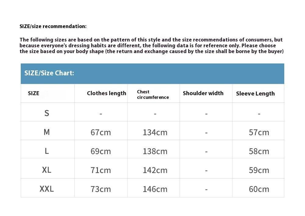 1. Asian sizes are 1 to 2 sizes smaller than European and American people. Choose the larger size if your size between two sizes. Please allow 2-3cm differences due to manual measurement. 2. Please check the size chart carefully before you buy the item, if you don't know how to choose size, please contact our customer service. 3.As you know, the different computers display colors differently, the color of the actual item may vary slightly from the following images.