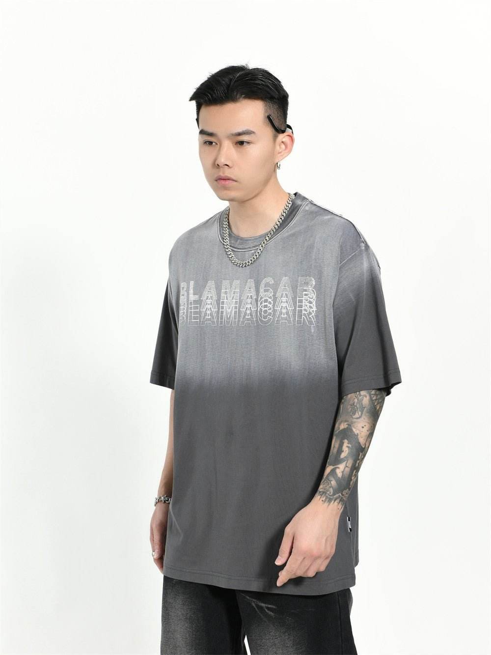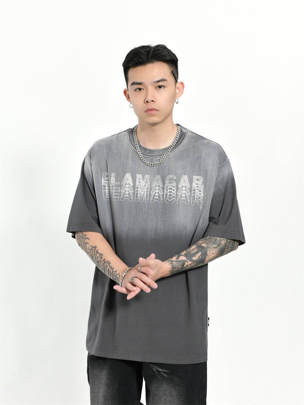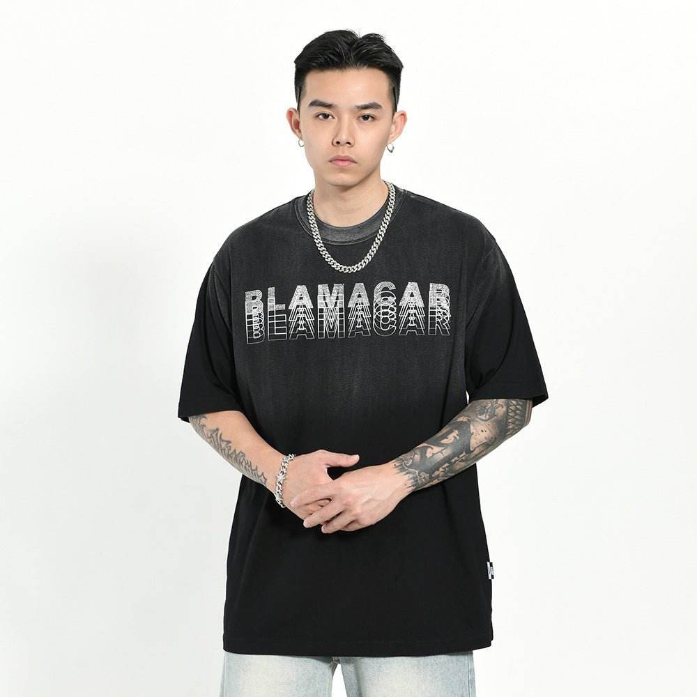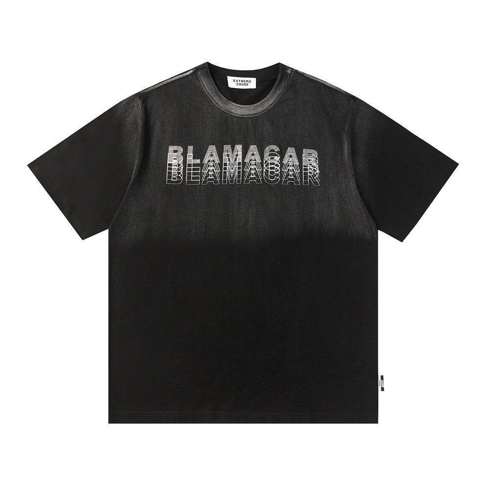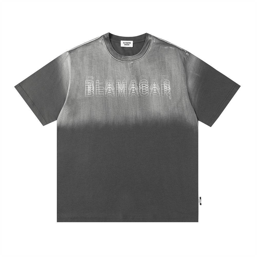 Gradient Letter Loose T-shirt Short Sleeve Men
