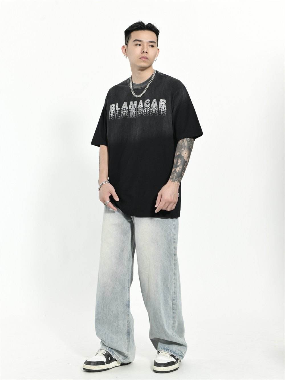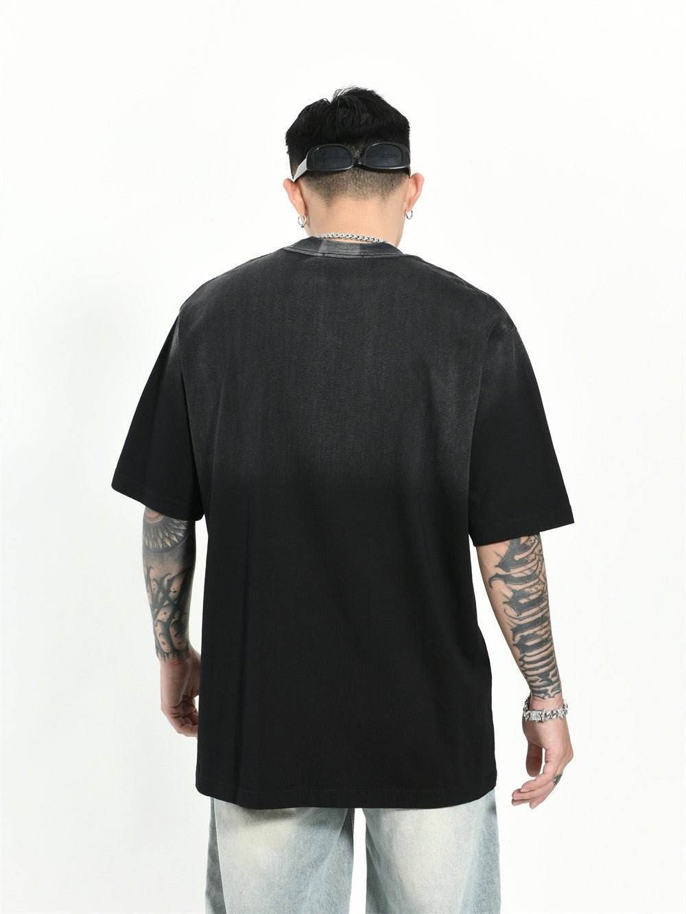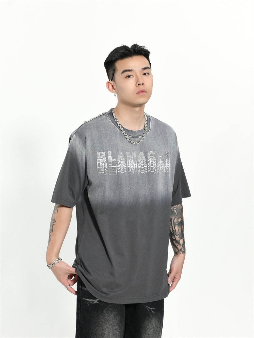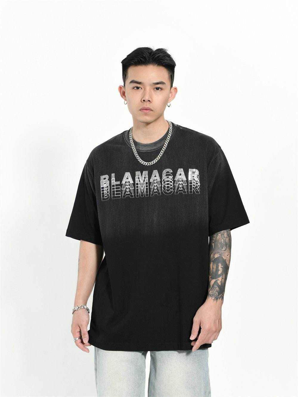 Gradient Letter Loose T-shirt Short Sleeve Men
