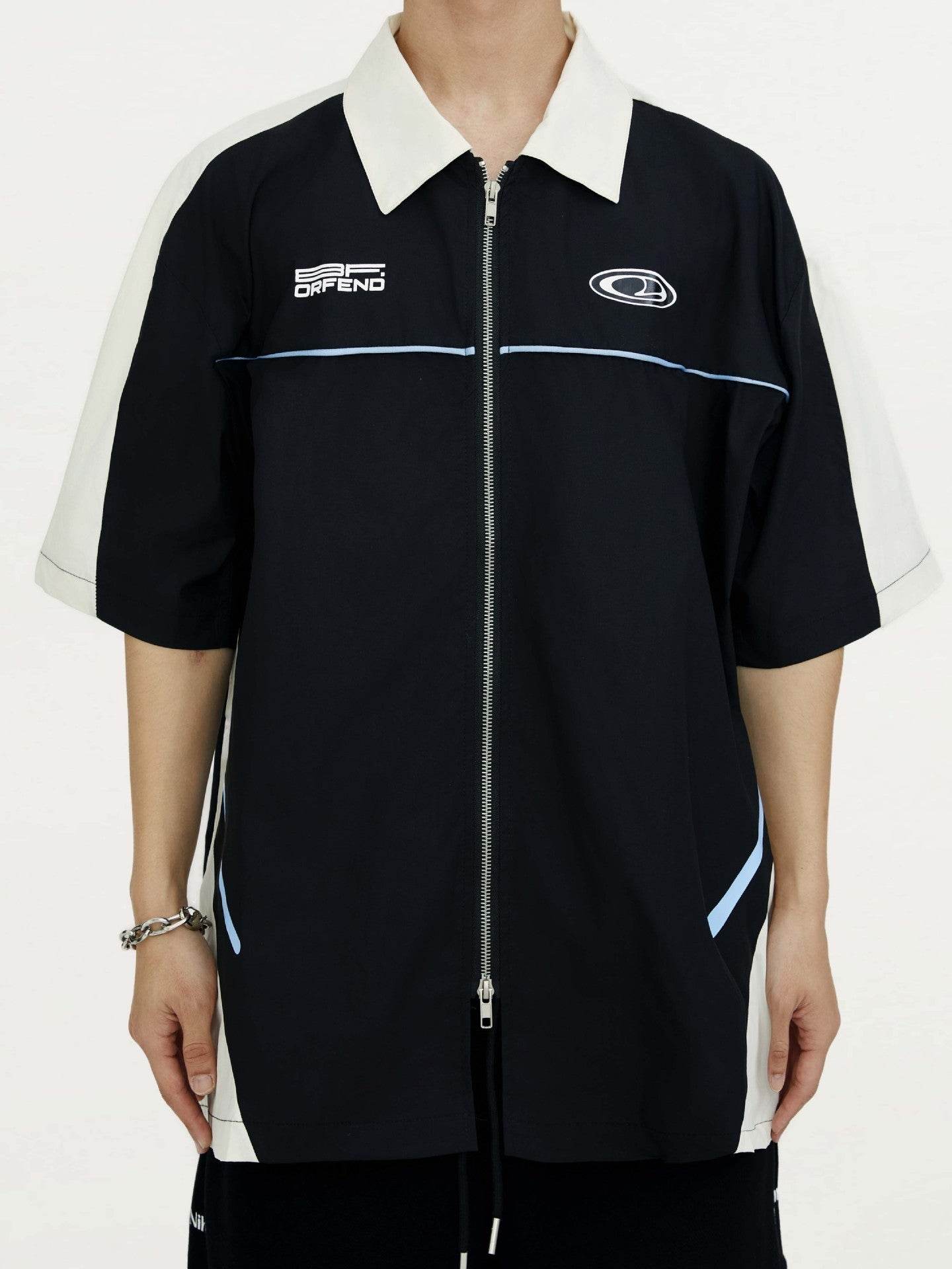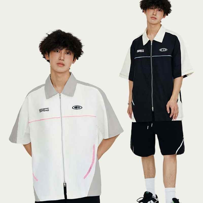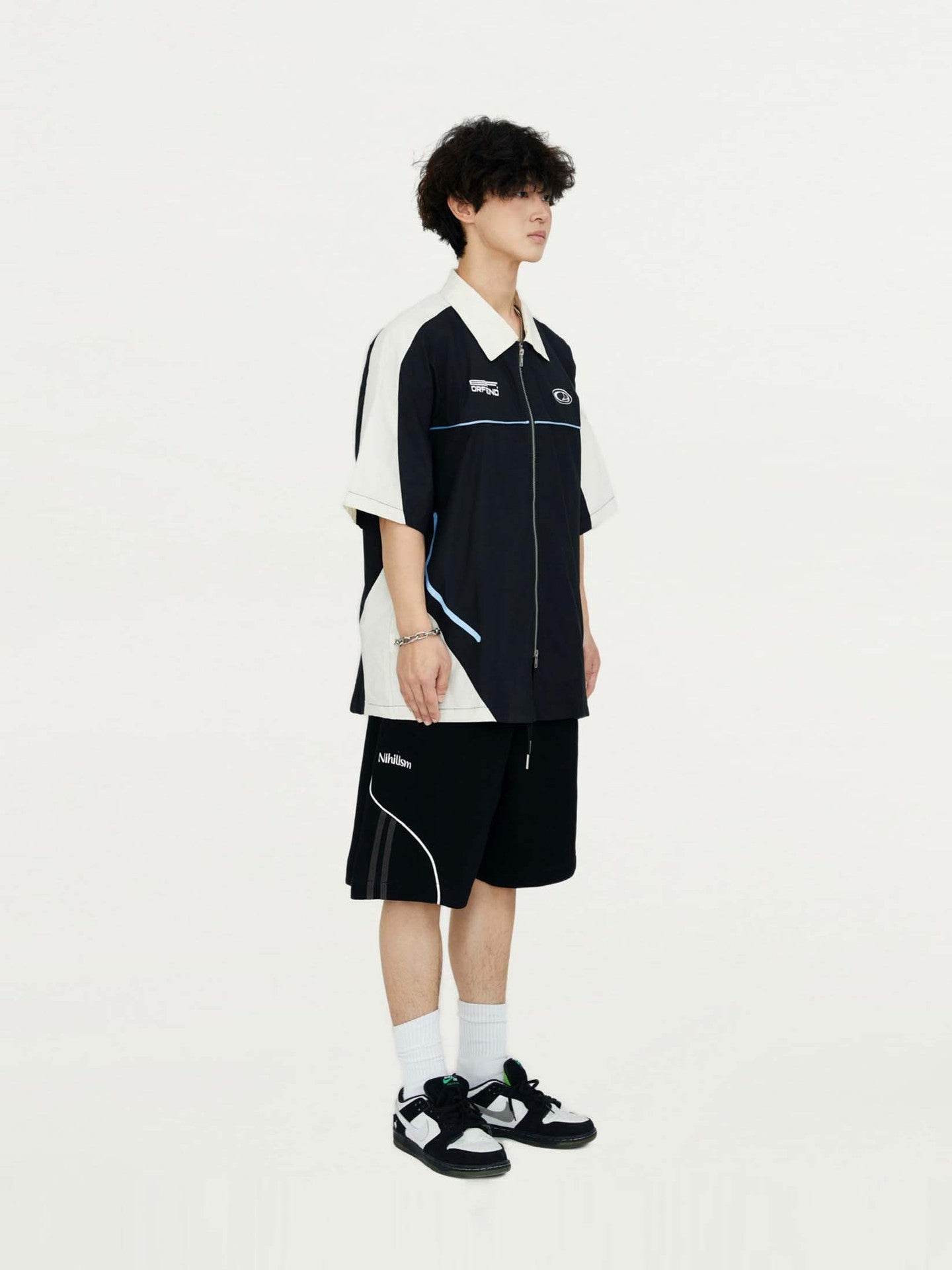 High Street Matching Letters Printing Lapel Short Sleeve Shirt For Men