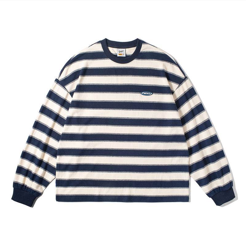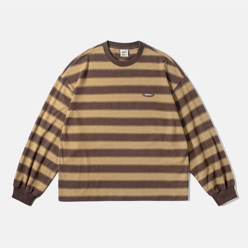 This Japanese-style retro striped long sleeve T-shirt features a loose fit and a versatile khaki tone, perfect for couples seeking coordinated casual wear. Crafted for comfort and style, its breathable fabric ensures all-day ease, while the timeless stripe design adds a subtle vintage charm. Ideal for relaxed outings or everyday wear, this shirt blends classic aesthetics with modern comfort. Handpicked by MuddyStock for those who appreciate understated elegance and quality.
