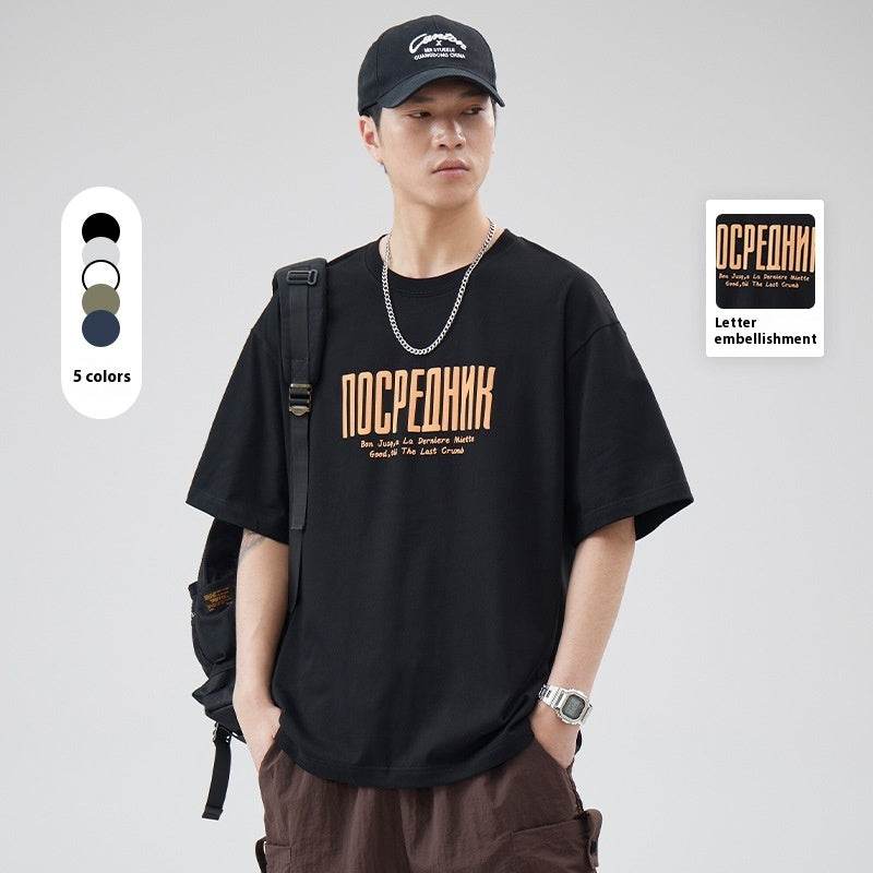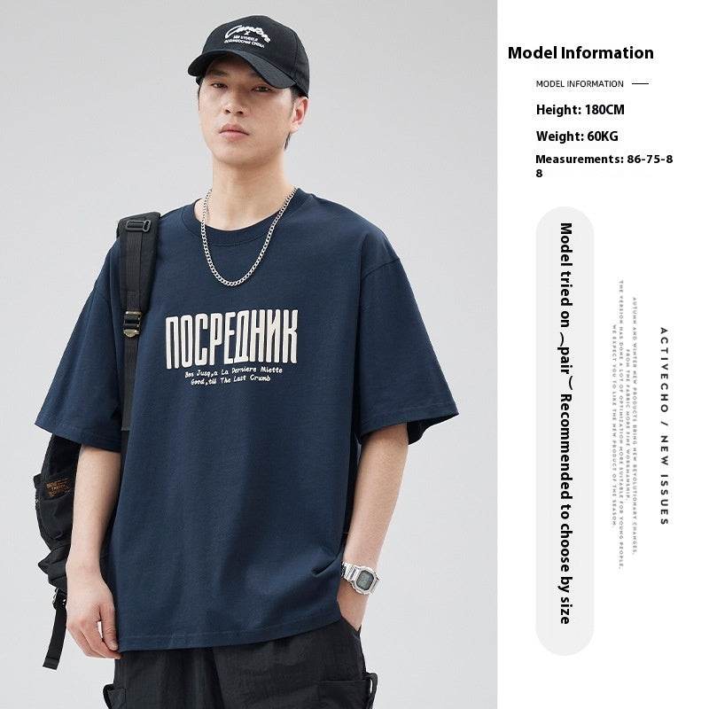 Letter Printed T-shirt Japanese Loose Cotton Half Sleeve T shirt