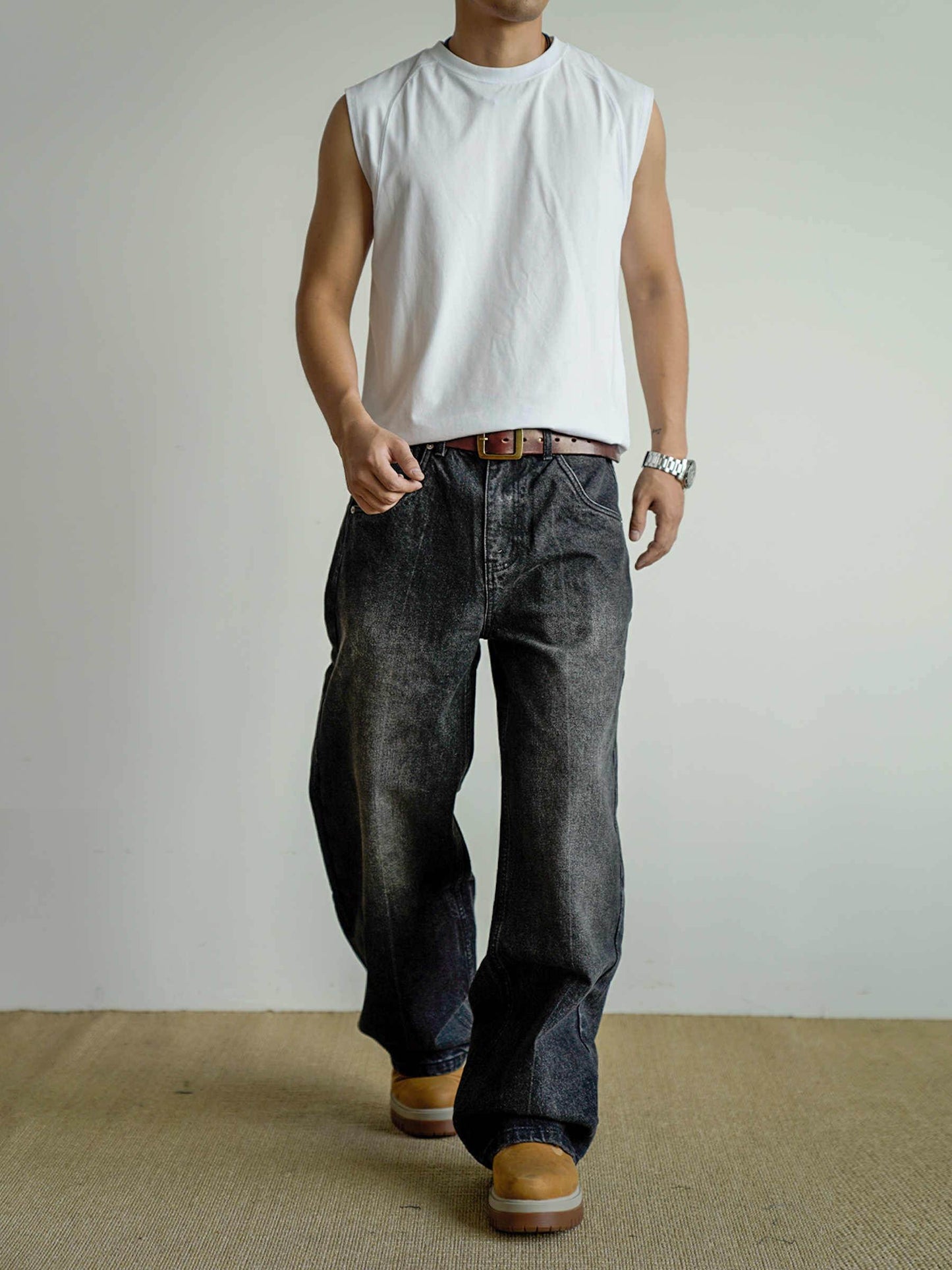 These Loose Straight Washed Distressed Black Jeans offer a perfect blend of comfort and edgy style. Crafted with a relaxed fit and carefully distressed details, they provide a modern, worn-in look without compromising durability. Ideal for casual wear, these jeans pair effortlessly with a variety of tops and footwear. Handpicked by MuddyStock for their quality and timeless appeal, they are a versatile addition to any wardrobe.