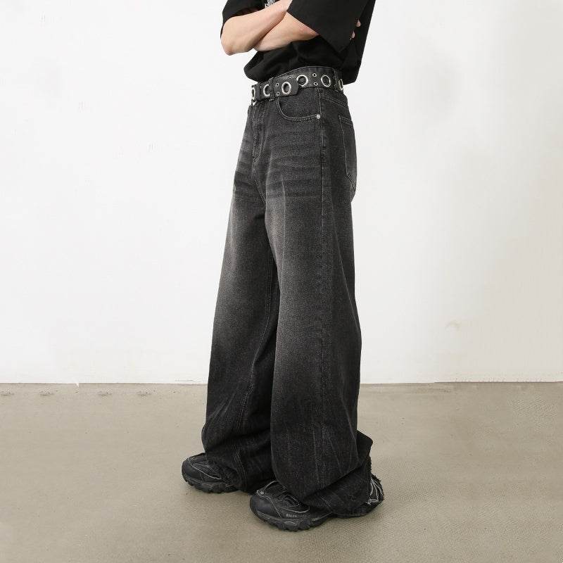 Men's Loose Straight-leg Denim Retro Tattered Jeans Wide Leg Pants