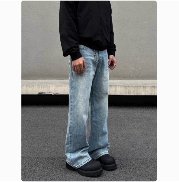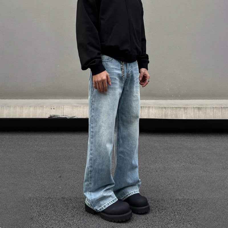 These Men's Retro Whisker Washed Blue Straight Jeans feature classic whisker detailing and a timeless straight-leg cut, offering a perfect blend of vintage style and modern comfort. Crafted for durability and everyday wear, they are a versatile addition to any wardrobe. Handpicked by MuddyStock for quality and authentic design.