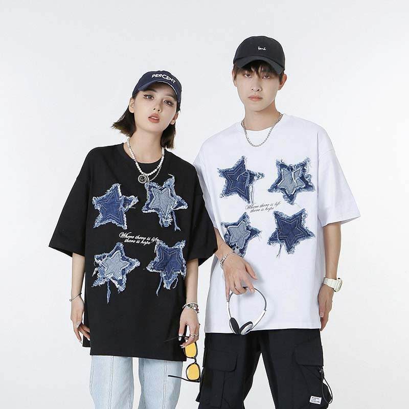 Vintage Patch Five-pointed Star Short Pomelo T Shirt For Men And Women