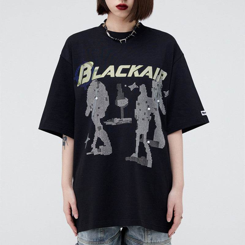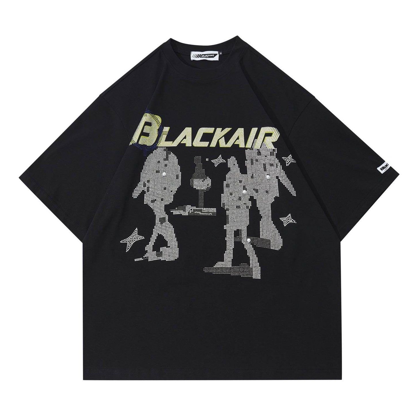Women's Vintage Printed Rhinestone Double Yarn Short Sleeve