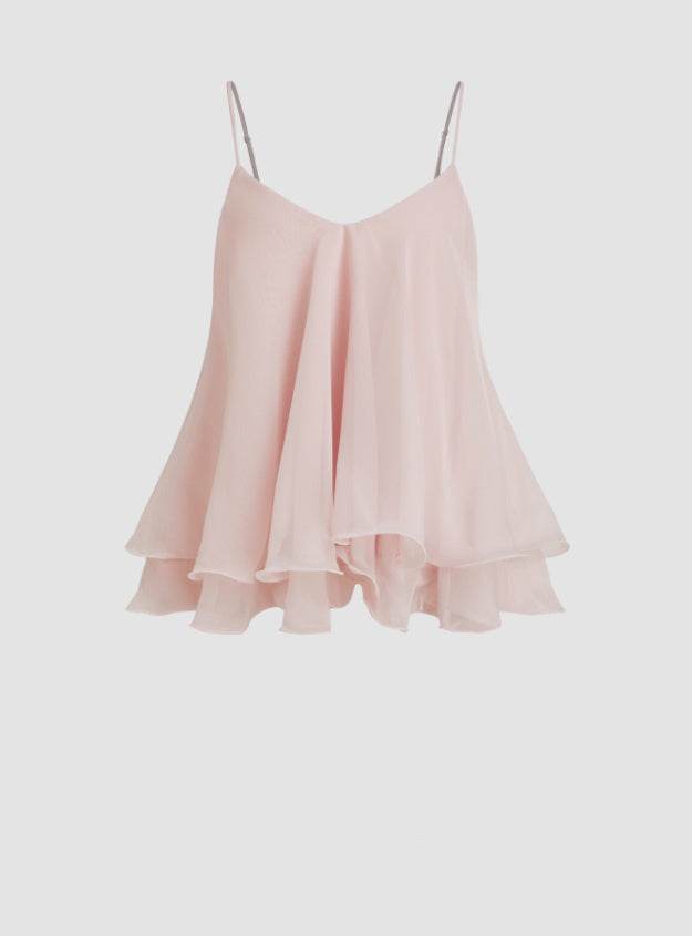 Elevate your wardrobe with this Mesh Camisole Short Top featuring delicate laminated ruffles that add a subtle yet sophisticated texture. Crafted for a lightweight, breathable fit, it pairs effortlessly with both casual and dressy looks. Handpicked by MuddyStock for those who appreciate refined style and quality details.