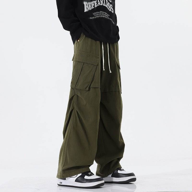 Overalls Men's Retro Trendy Pleated Straight-leg Trousers Casual
