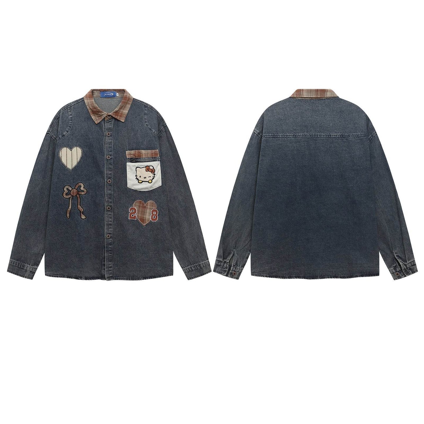 Retro Cartoon Embroidery Denim Long Sleeve Shirt For Women | MuddyStock Originals