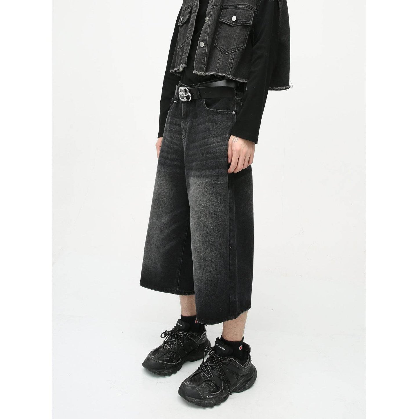 Retro Distressed Flared Cropped Pants For Men And Women