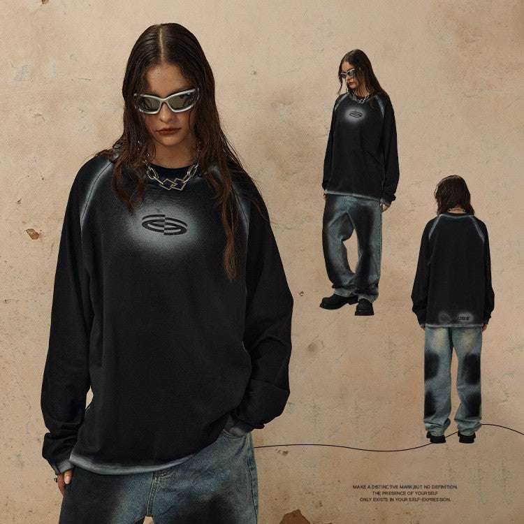 Elevate your wardrobe with this Retro Goth Spray Painting Loose Round Neck Top, crafted from pure cotton for ultimate comfort and breathability. Its loose fit and round neckline offer a relaxed yet stylish silhouette, perfect for everyday wear or making a bold statement. The unique spray paint design adds an edgy, artistic touch that stands out effortlessly. Handpicked by MuddyStock to blend comfort with distinctive style, this top is a must-have for those who appreciate fashion with a creative twist.