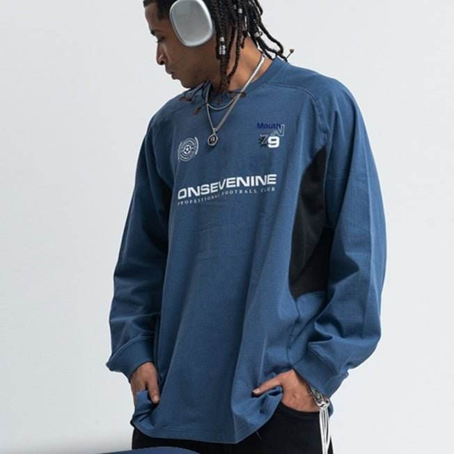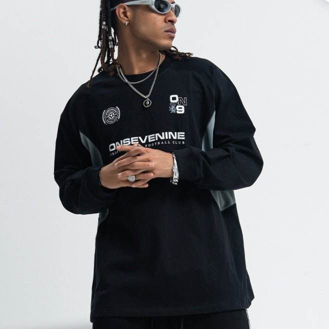 Retro Raglan Stitching Design Long-sleeved T-shirt Men