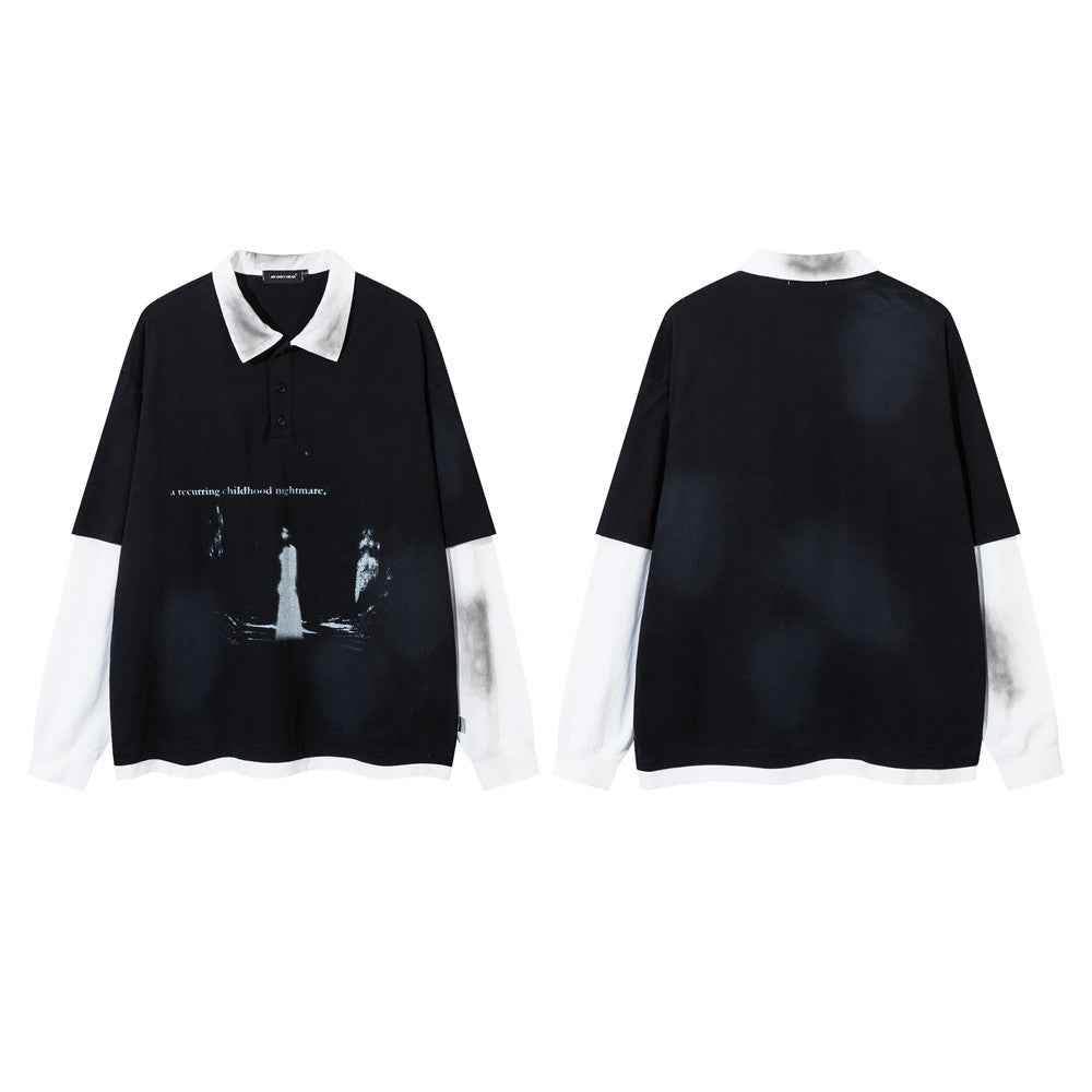 Stitching Long Sleeve Fake Two-piece T-shirts For Men And Women