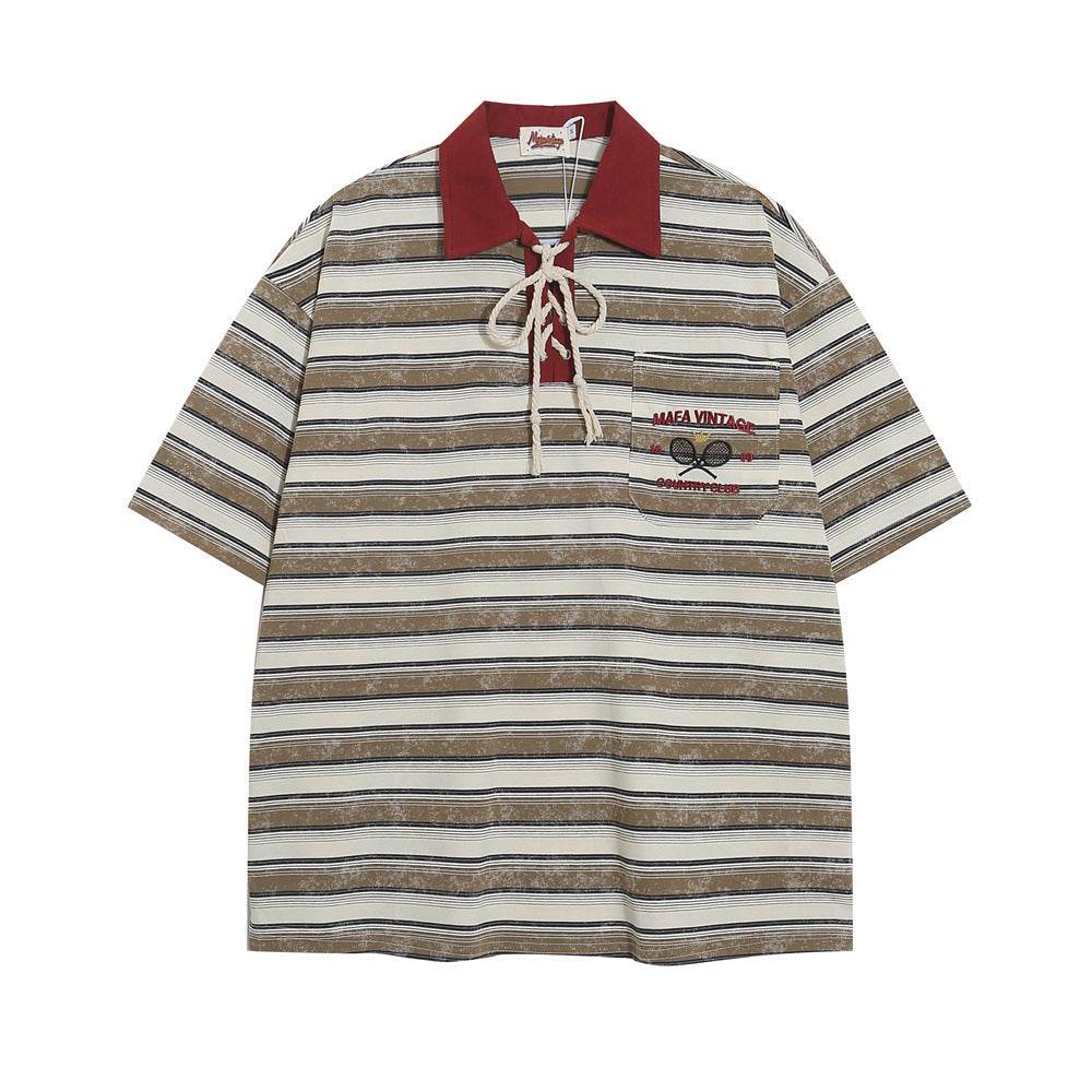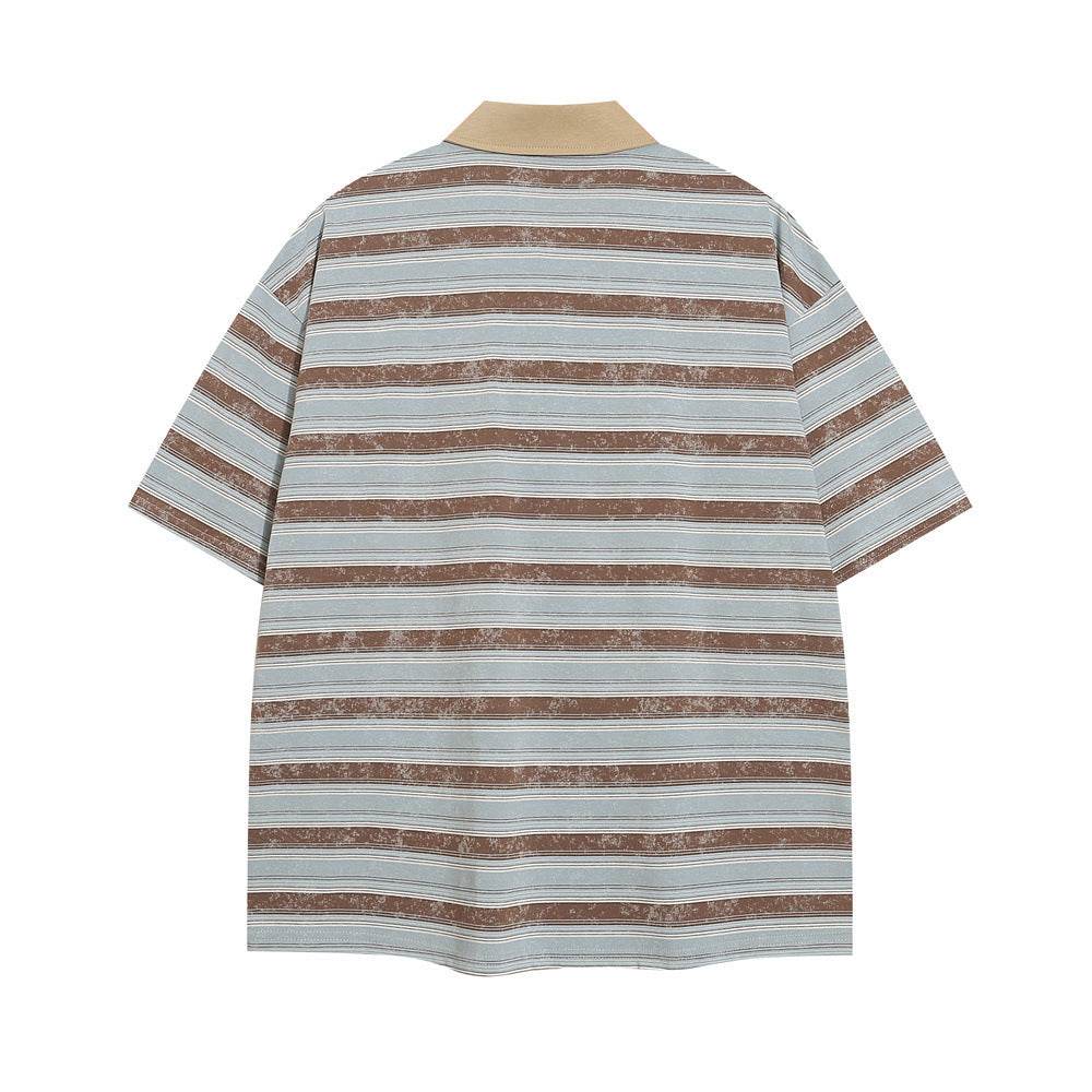 Striped Polo Shirt Casual Short-sleeved Top For Men And Women
