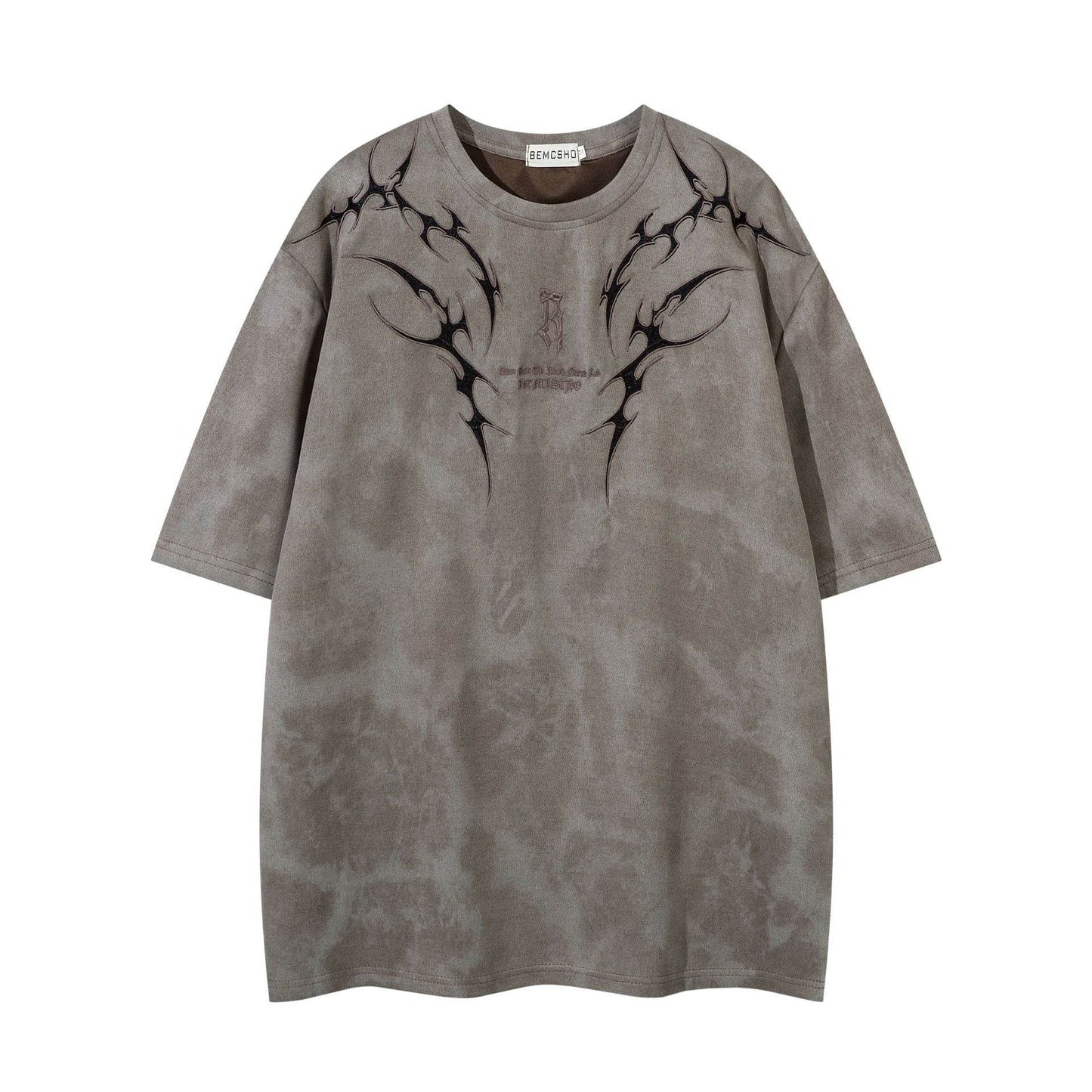 Summer American Retro Thorn Embroidered Short-sleeved T-shirt Men