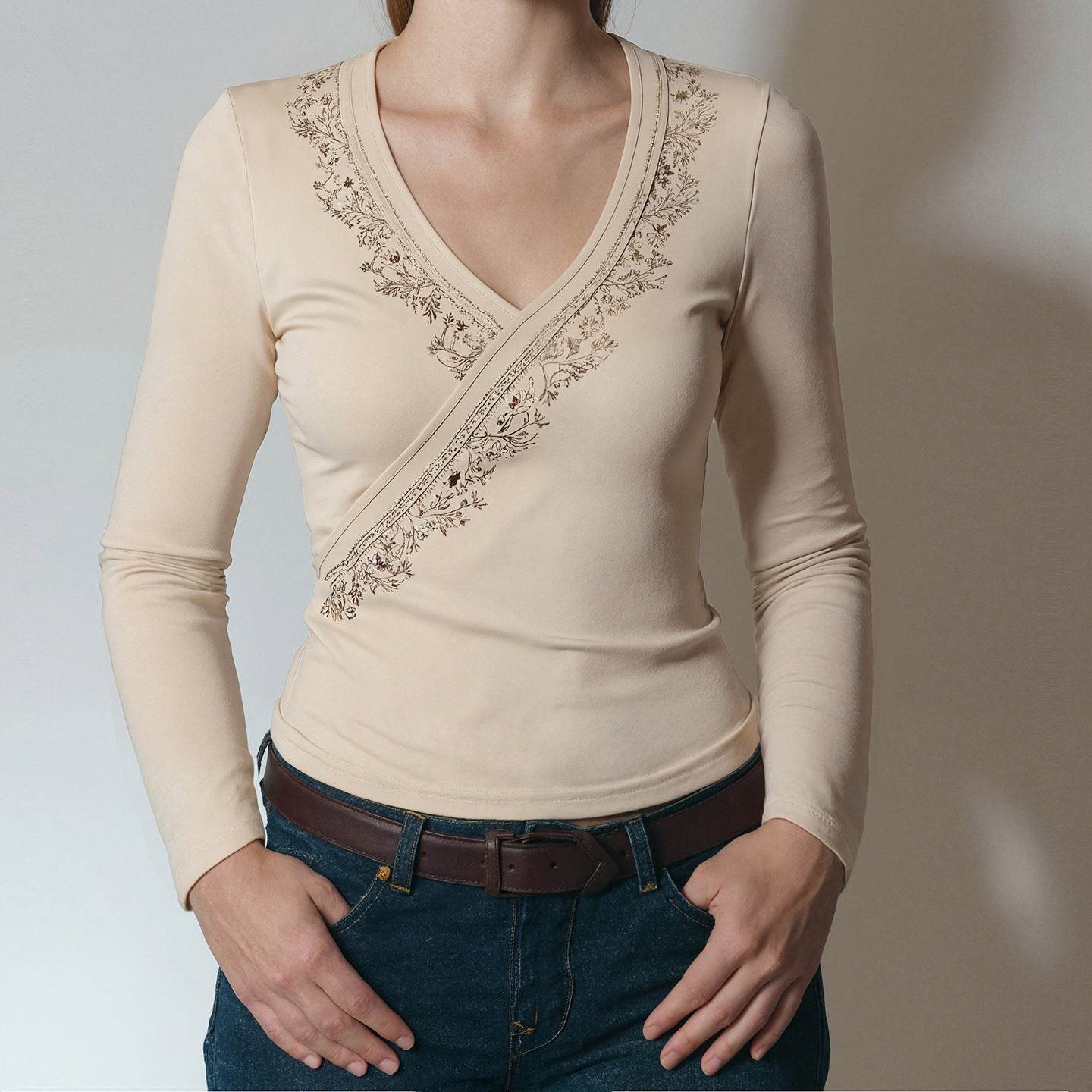 Vintage floral print cross V-neck long sleeved top | MuddyStock Originals