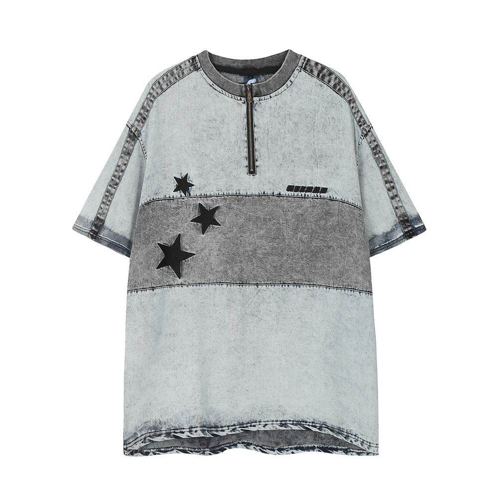 Washed Denim Short-sleeved Shirt For Men