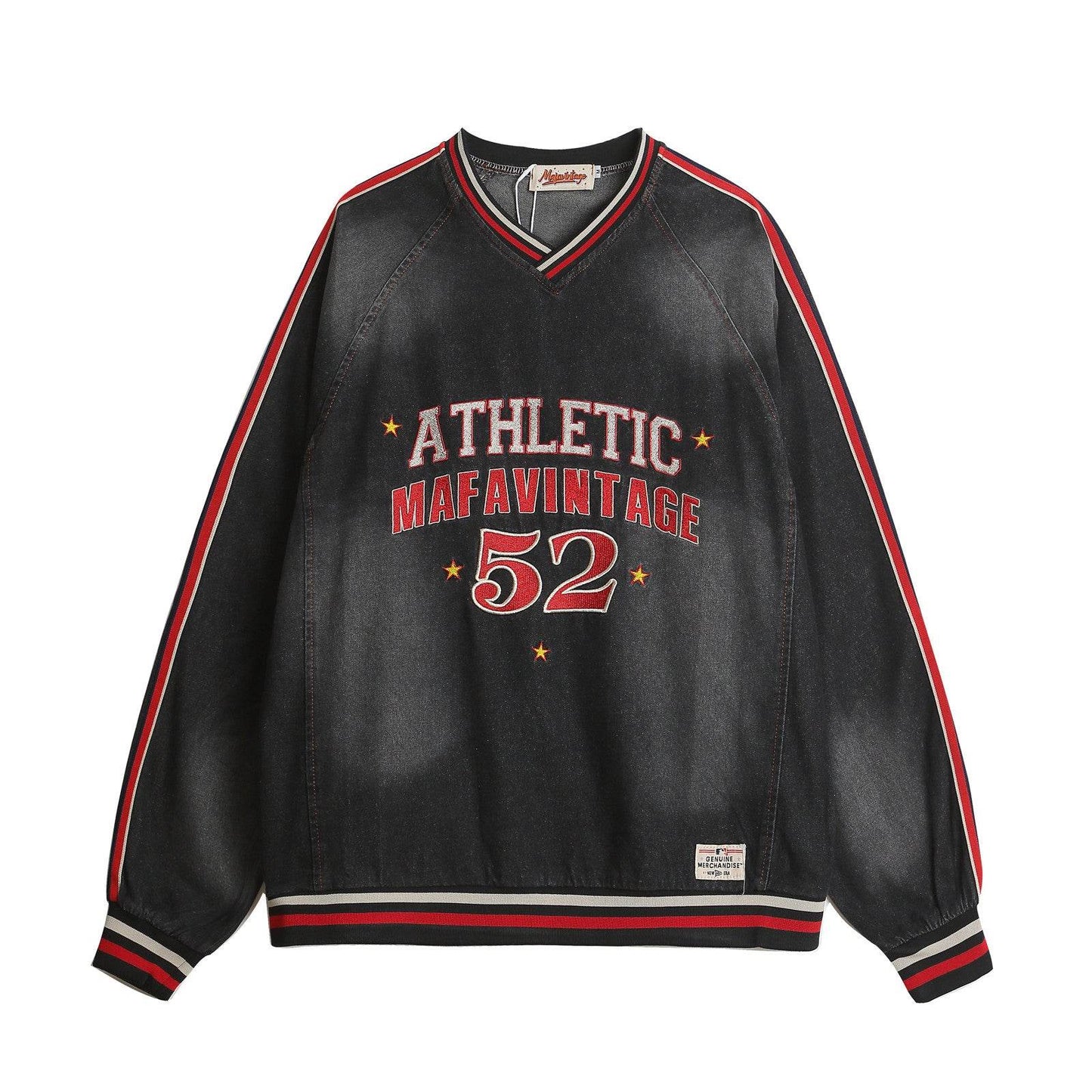 Letter Embroidered V-Neck Denim Sweatshirt For Men And Women | MuddyStock Originals