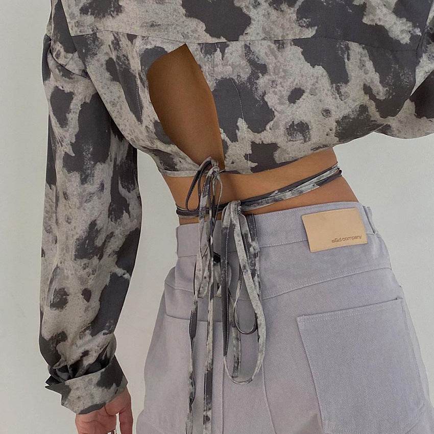Women's Long Sleeve Tie Dye Lapel French Style Top