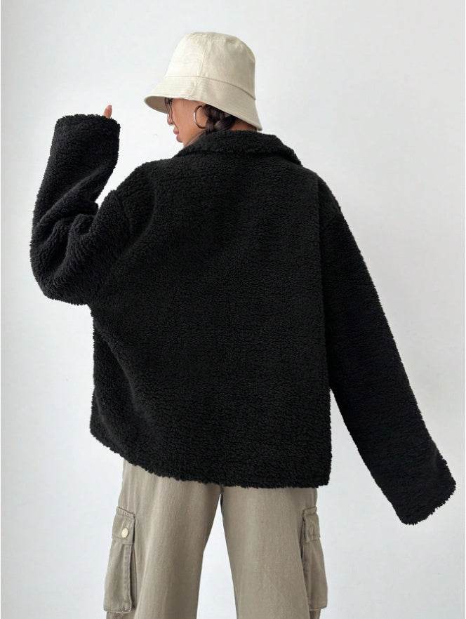 Women's Regular Fit Teddy Fleece Drop Shoulder Jacket